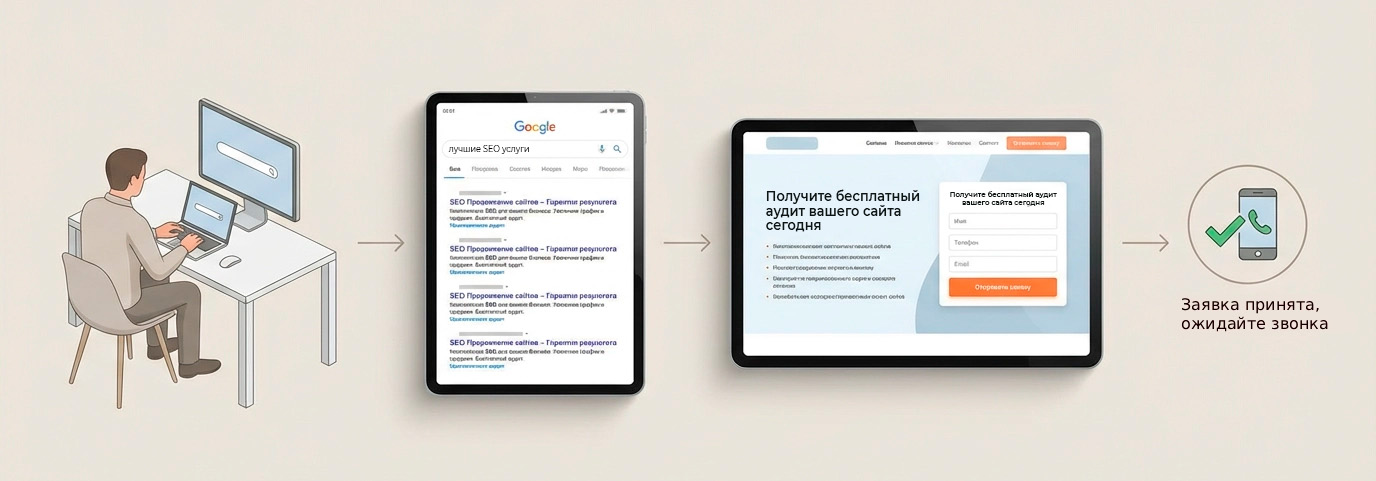 SEO — это комплекс работ по улучшению сайта для поисковых систем и людей. Цель — занять высокие позиции по целевым запросам, стабильно получать органический трафик и превращать его в заявки, звонки и продажи.